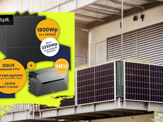 Im Angebot befindet sich ein Komplett-Set, das Euch den Einstieg in die Solarwelt so einfach wie möglich macht. Wenn Ihr über unseren exklusiven Link bestellt, spart Ihr satte 760 Euro. Auf der Rechnung stehen dann statt 2.159 Euro nur noch 1.399 Euro. Für das Geld bekommt Ihr vier Module mit einer Leistung von je 450 Watt. Insgesamt schafft es das Set also auf 1.800 Watt. Die bifazialen Module arbeiten besonders effizient, denn sie nehmen auch über die Rückseite Sonnenstrahlen auf, wodurch Ihr mit einer Maximalleistung von 2.250 Watt rechnen könnt. Durch die TopCon-Technologie haben die Module außerdem einen höheren Wirkungsgrad als herkömmliche Solarzellen.