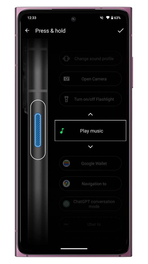 Auf der rechten Seite des Telefons befinden sich die übliche Lautstärkewippe und die Einschalttaste, wobei letztere den Fingerabdruckleser integriert. Auf der Oberseite befindet sich nur ein Mikrofon, während die linke Seite mit einer texturierten, anpassbaren Schnelltaste ausgestattet ist.