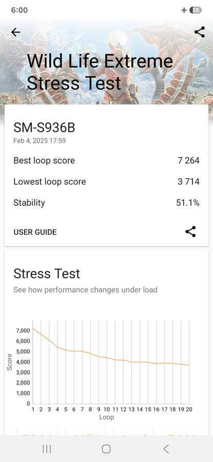 Die Gaming-Leistung war ebenfalls einwandfrei: Der SoC konnte hohe Grafikeinstellungen mit flüssigen Frameraten bewältigen. Das S25+ bot interessanterweise sogar eine stabilere Leistung als das Ultra, mit weniger Schwankungen zwischen den Durchläufen bei den 3D Mark Stresstests, ohne dabei zu heiß zu werden.