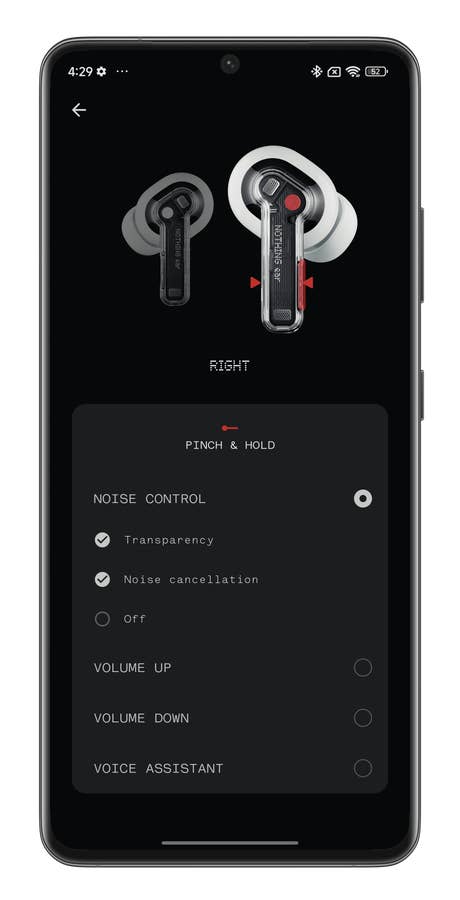 Und ich schätze die Philosophie hinter dem Produkt wirklich sehr, insbesondere die Tatsache, dass man den Usern die Wahl lässt, ob sie ihr Nutzererlebnis komplexer machen wollen oder nicht. Ich kann meine Geräuschunterdrückung manuell an meine Umgebung anpassen. Oder ich kann die Arbeit den Algorithmen von Nothing überlassen, die das ANC automatisch anpassen.