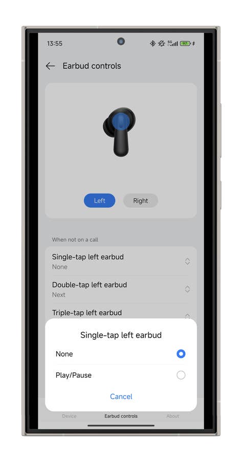Die Touch-Steuerung ist ziemlich anpassbar. Die OnePlus Nord Buds 3 Pro können fünf verschiedene Arten von Touch-Befehlen erkennen. Das ist nicht schlecht und man kann jedem Gesten-Typ mehrere Befehle zuweisen. Die Steuerung schien mir ziemlich reaktionsschnell zu sein.