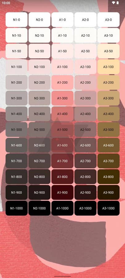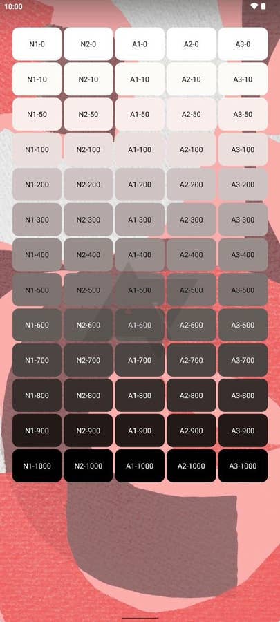 Android 13 verbessert die ursprüngliche Material-You-Palette und bietet eine größere Auswahl an Themenfarben mit 16 Optionen, die auf dem verwendeten Hintergrundbild und 16 Grundfarben basieren. Das erweitert die vier Optionen, die normalerweise unter Android 12 zur Verfügung stehen.