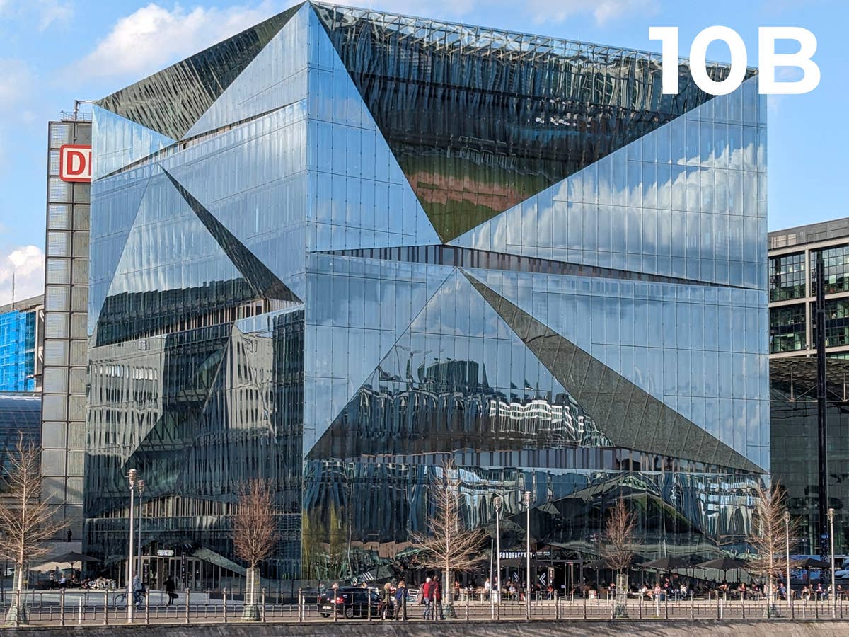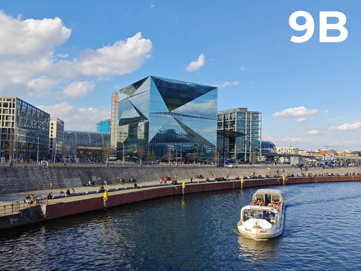 Bei dem nächsten Motiv, dem Cube Berlin handelt es sich um ein Gebäude, welches mit seinen verspiegelten Glasflächen nicht leicht zu beurteilen war. Hier hat vermutlich bei Eurem Urteil mehr geholfen, auch den Blick auf den dahinter liegenden Hauptbahnhof schweifen zu lassen. Und klar – geht es um Details, nimmt man besser das Apple iPhone 14. Aber bitte nur in Gelb. Interessant, dass hier unser Zweitplatzierter im Gesamtranking, so gar nicht überzeugen konnte. Tatsächlich der einzige Fauxpas, den sich die Südkoreaner in unserem Kamera-Blindtest erlaubt haben.