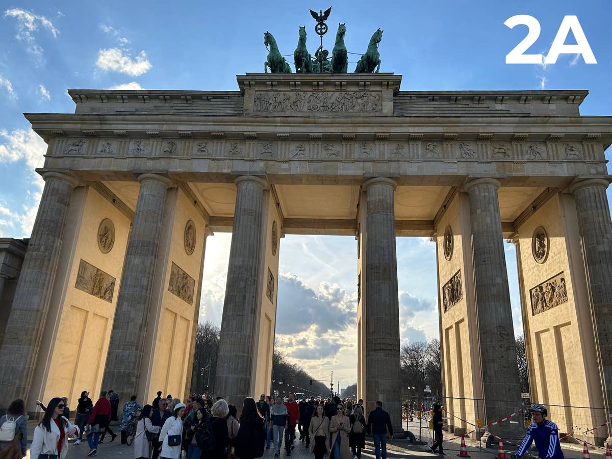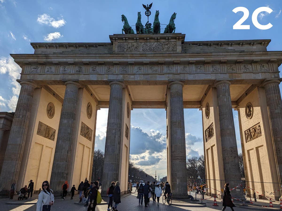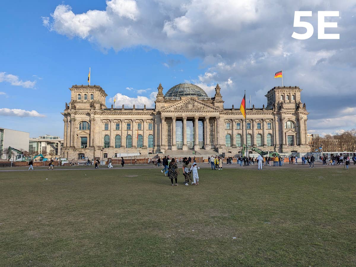Kein Berlin-Besuch ohne ein Selfie vor dem Brandenburger Tor. Das Motiv des Berliner Stadttors bietet alles, was sich der typische Fotograf wünscht: Blauer Himmel mit einigen Wolken und feine Stuckarbeiten gekrönt von der stolzen Quadriga. Nur dass wir hier gegen das Sonnenlicht fotografieren, mag nur das Tor verbergen. Die langen Schatten geben aber dennoch den Stand der hell scheinenden Wärmequelle an. Hier hat doch tatsächlich zu unserer Überraschung das OnePlus 11 (2E) überzeugen können. Und das, wo doch tatsächlich unten links ein HDR-Fehler auf dem Foto zu sehen ist. Denn die mehrfachen Aufnahmen wurden nicht korrekt zusammengefügt, sodass die weißhaarige Frau einen etwas ungewöhnliche Kopfform erhalten hat.