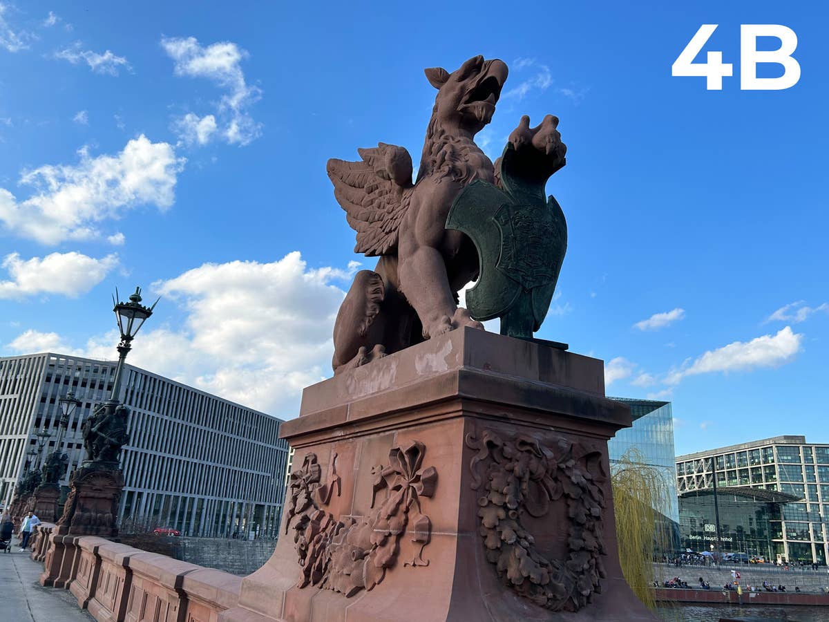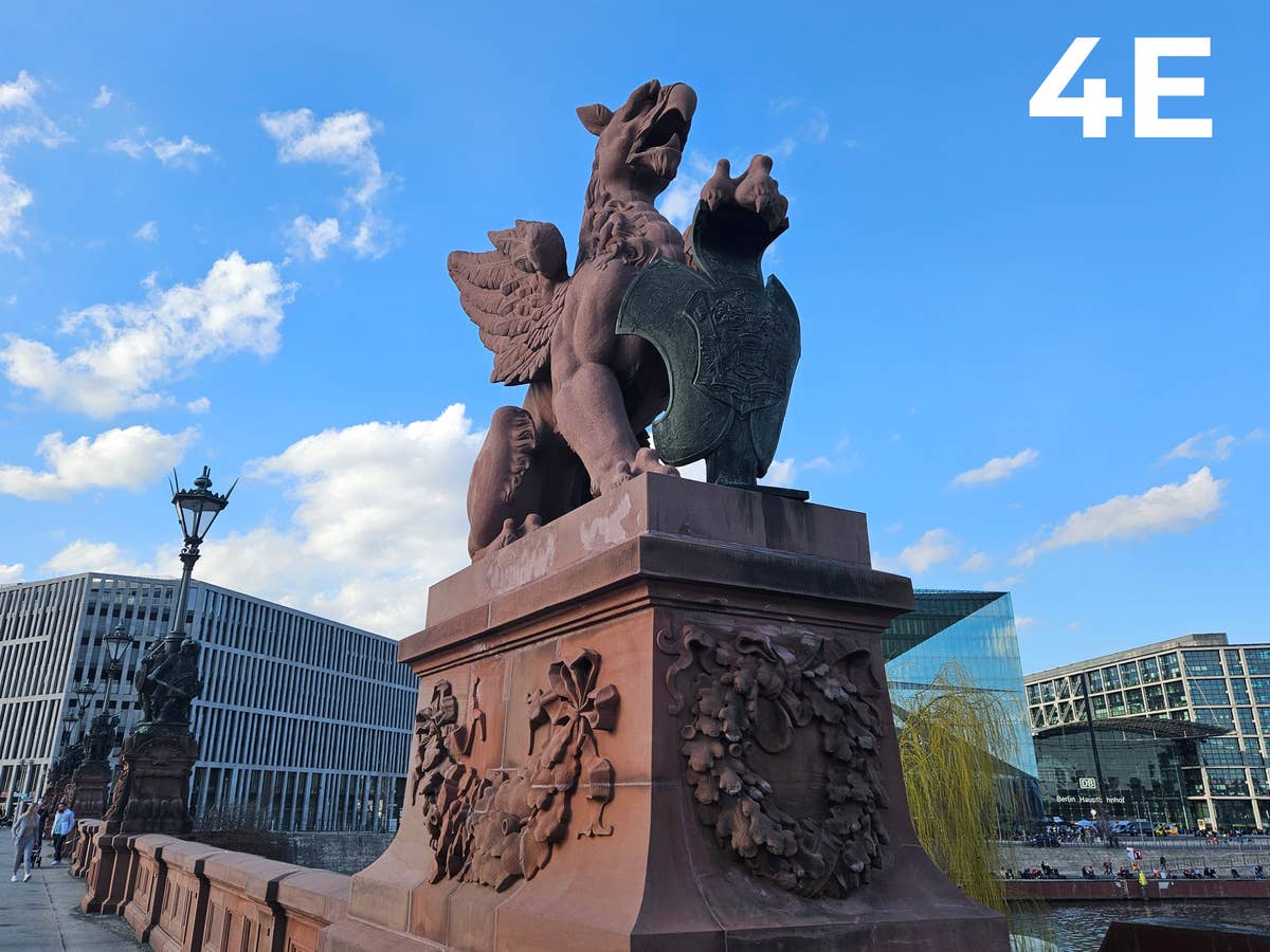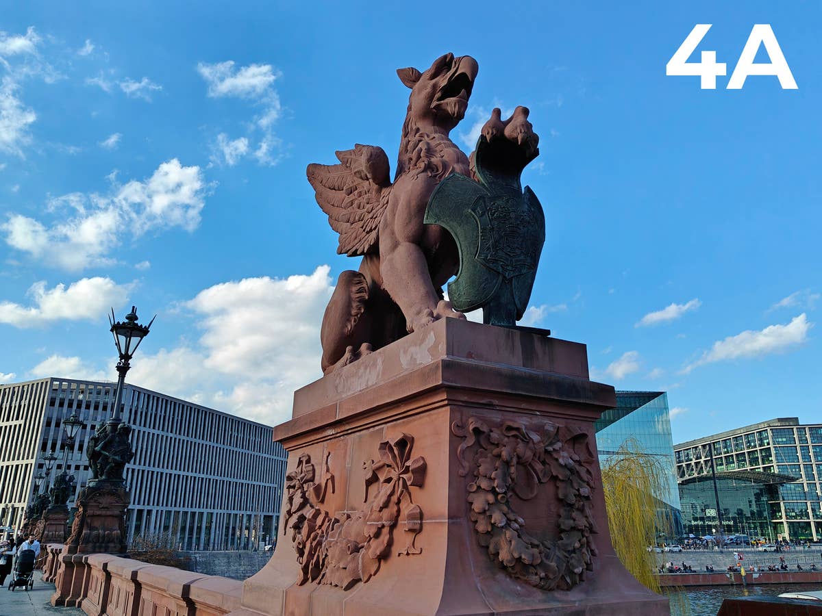 Die 78 Meter lange denkmalgeschützte Moltkebrücke bietet, mit seinen roten Skulpturen, ein durchaus interessantes Fotomotiv. Wer ein wenig hineinzoomt, kann einige interessante Gravuren und Strukturen des Greifs erkennen. Am besten hat das Eurem geschätzten Urteil zufolge das Google Pixel 7. Auf Platz Zwei erneut das Samsung-Smartphone.