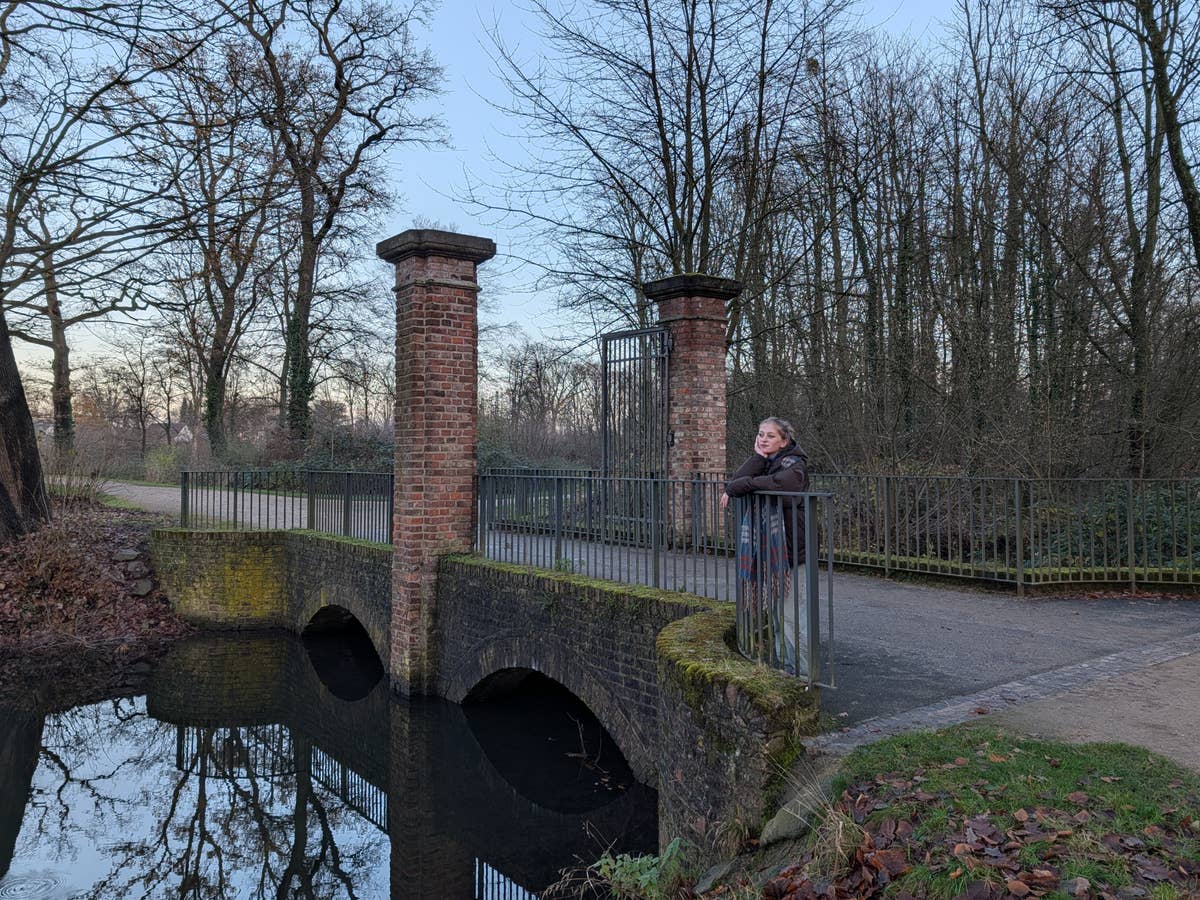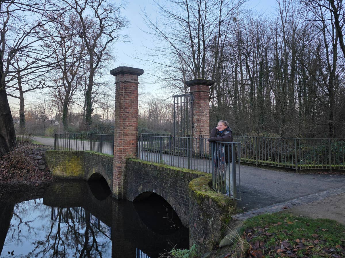 Die Sonne ist hinter den Häusern verschwunden, doch noch ist es nicht komplett dunkel. Mit den kahlen Ästen der Bäume und der gemauerten Brücke müssen die Smartphones viele Details einfangen.