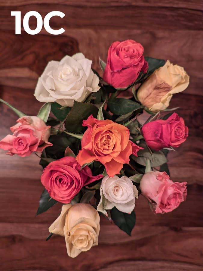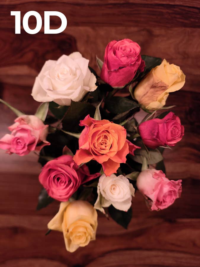 Bei unserem zehnten Motiv schwingen wir uns an der Esstisch und fotografieren von oben in den Blumenstrauß. Die Lichtverhältnisse kennt Ihr bereits vom vorherigen Szenario. Nun geht’s allerdings um die Abbildung feiner Details – und eine schöne Bildschärfe. Außerdem zeigt sich bei diesem Motiv, dass große Bildsensoren nicht unbedingt nur Vorteile bieten.