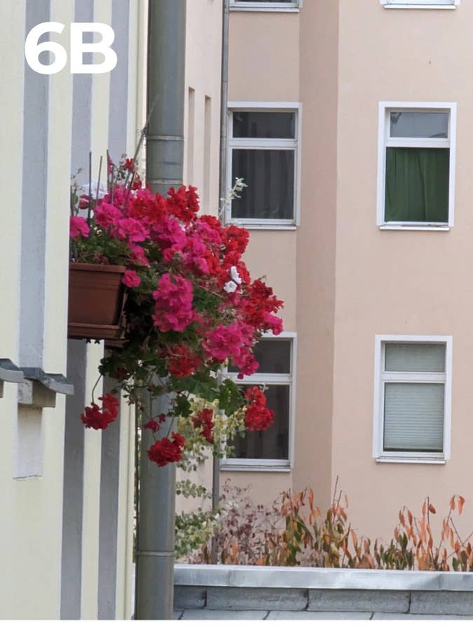 Die Fotos bei Motiv 6 sind allerdings auch allesamt mit 15x-Zoom gemacht, was schon eine sehr starke Vergrößerung ist. Da bleibt dann nur: Augen zu und den besten Matsch wählen ^^ Bei den Blumen oder den Jalousien im Hintergrund sind schon ein paar Unterschiede sichtbar, finde ich.