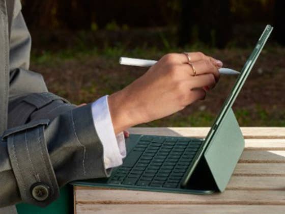 Aus dem Video-Teaser geht hervor, dass die Tastatur magnetische Anschlussstifte an der Unterseite des Tablets nutzen wird, wenn es horizontal angedockt ist. Außerdem sieht man, dass das Tastaturgehäuse ein Trackpad besitzt, dessen oberes Gehäuse als Stütze dient, ähnlich wie das Smart Keyboard Folio von Apple.