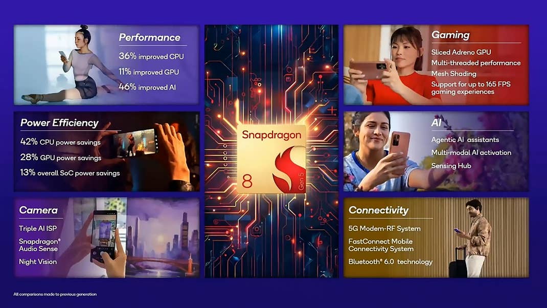 An anderer Stelle enthält die Gen 5 das X80 5G-Modem und den Bildsignalprozessor, die gleichen Komponenten, die auch im letztjährigen Snapdragon 8 Elite zu finden waren.
