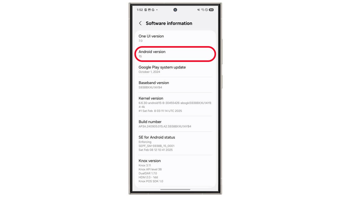 - Tippt auf die Android-Version, bis das N auf dem Bildschirm erscheint.