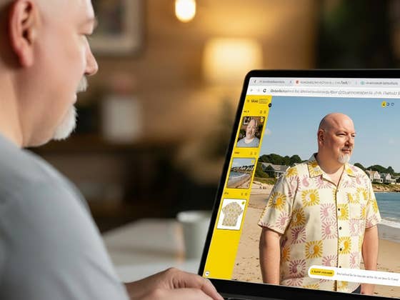 Ihr seht im Bild auch, dass die Eingabezeile komplett leer ist. Ich hab lediglich mein Porträt, einen Hintergrund und ein Kleidungsstück in die Runde geworfen und Whisk weiß automatisch, was zu tun ist. Auf dem Bild stehe ich also in der Gegend rum und trage das Hemd. Großartig, oder?