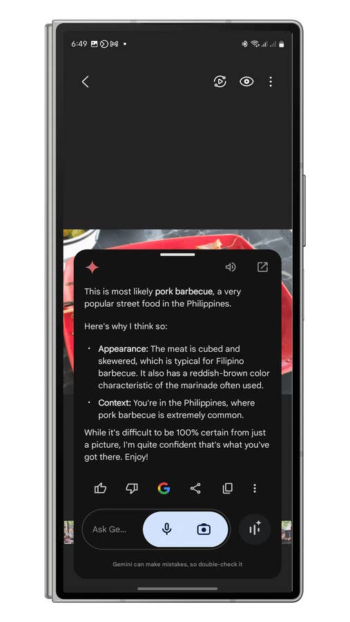 Gemini kann nach Bildern oder Frames in Videos suchen und ist damit eine Alternative zu Google Lens. Es lässt sich auch mit der Galerie Eures Geräts integrieren.