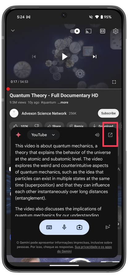 - Tippt oder sprecht: „Dieses Video zusammenfassen“.