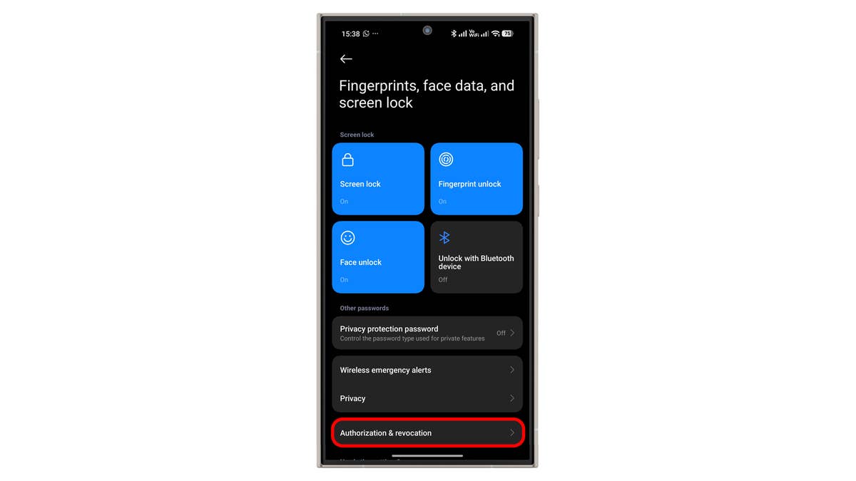 - Geht zu Fingerabdrücke, Gesichtsdaten und Bildschirmsperre.