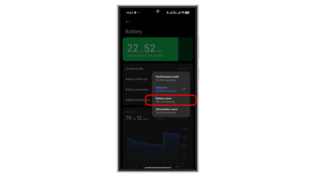 Die Modi zur Akkuoptimierung haben sich ebenfalls geändert. Die Standardeinstellung ist jetzt „Ausbalanciert“. Für eine längere Laufzeit könnt ihr zu Battery Saver oder Ultra Battery Saver wechseln. Der Ultra-Modus kann die Akkulaufzeit verdreifachen, schaltet aber viele Funktionen ab. Battery Saver ist ideal, um die Ladehäufigkeit zu reduzieren, ohne die Leistung zu beeinträchtigen.
