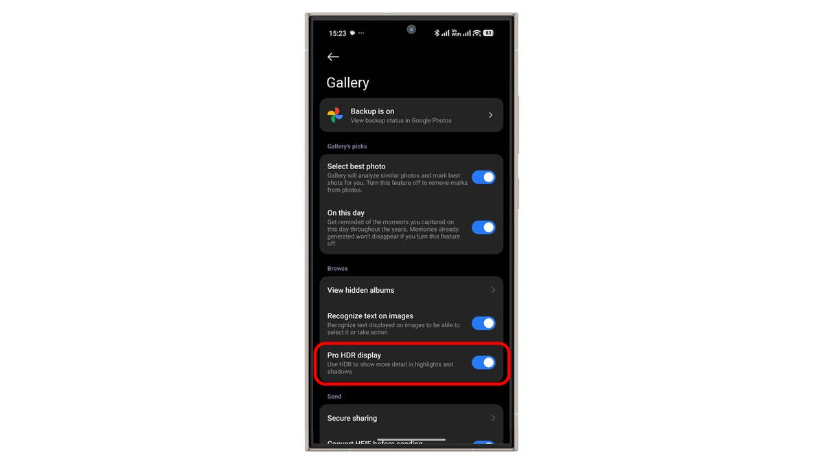 Pro HDR ist eine Funktion, die auf ausgewählten Xiaomi-Geräten verfügbar ist. Sie verbessert die Helligkeit und den Kontrast in Bildern, wenn diese in der Galerie angezeigt werden, um die visuelle Qualität zu verbessern. Die Funktion wird im neuesten HyperOS beibehalten, bleibt aber standardmäßig deaktiviert. Folgt diesen Schritten, um die Funktion über die Galerie-App zu aktivieren: