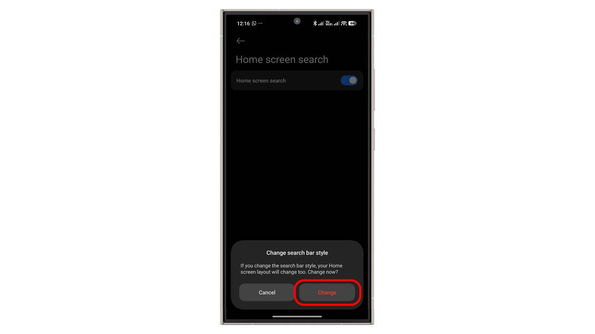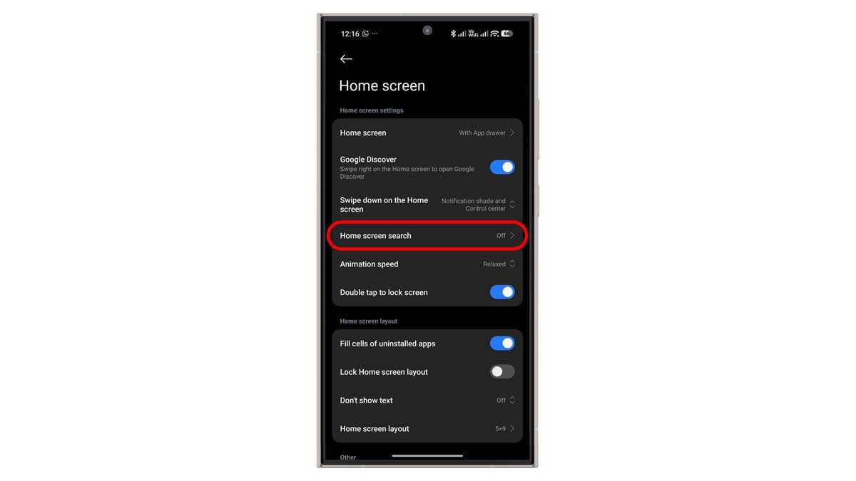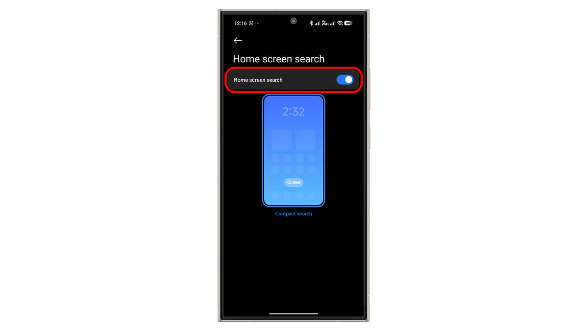 Eine praktische neue Funktion für diejenigen, die viele Apps installiert haben, ist die Suchleiste auf dem Startbildschirm. Sobald sie aktiviert ist, ersetzt sie das standardmäßige Google-Such-Widget, obwohl ihr die Google-Suche immer noch an beliebiger Stelle hinzufügen könnt.