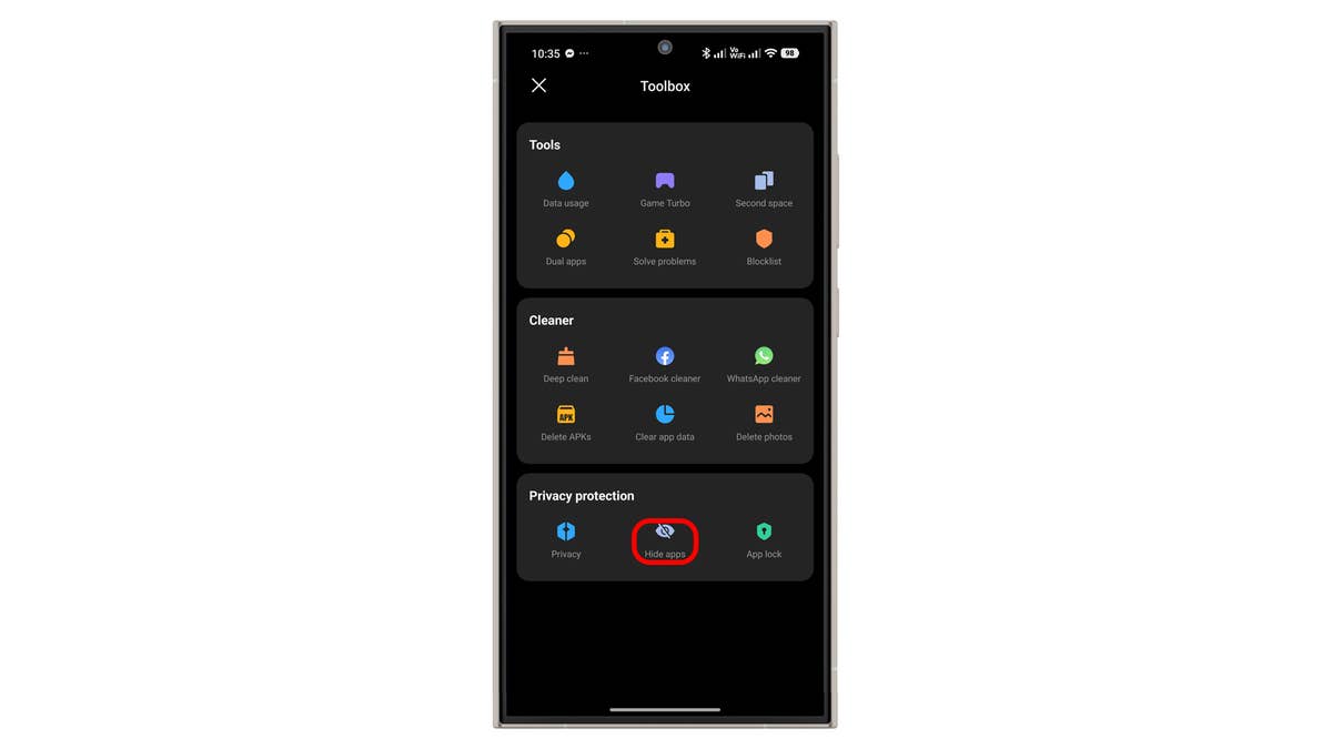 Die Funktion „Apps ausblenden“, die erstmals in HyperOS 2.0 eingeführt wurde, weist in Version 3.0 kleinere Änderungen auf. Greift vom Startbildschirm aus über die App „Sicherheit“ darauf zu und wischt dann nach oben, um den Bereich „Toolbox“ zu öffnen.