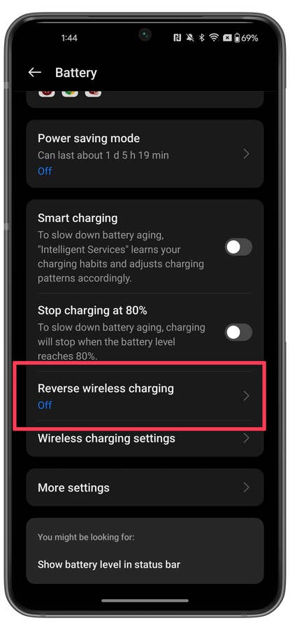 Unter OxygenOS (und einigen ColorOS-Versionen) sind die Schritte für das umgekehrte drahtlose Laden wie folgt: