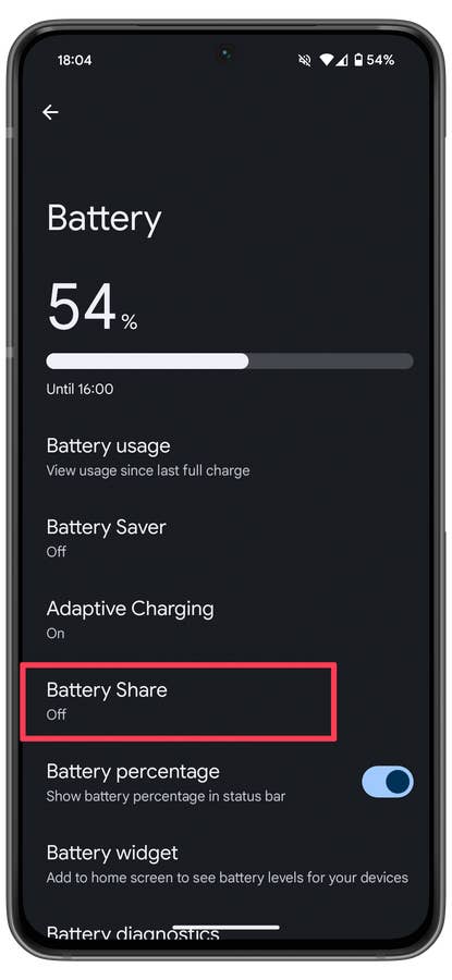 Google nennt die Option zum kabellosen Rückwärtsladen auf seinen Handys Battery Share. Die Option kann sowohl in den Schnelleinstellungen als auch in der Einstellungs-App aktiviert werden, indem Ihr diese Schritte befolgt: