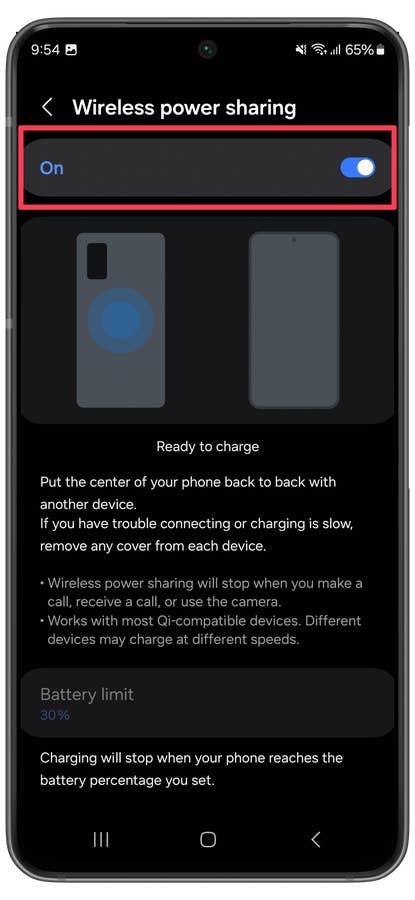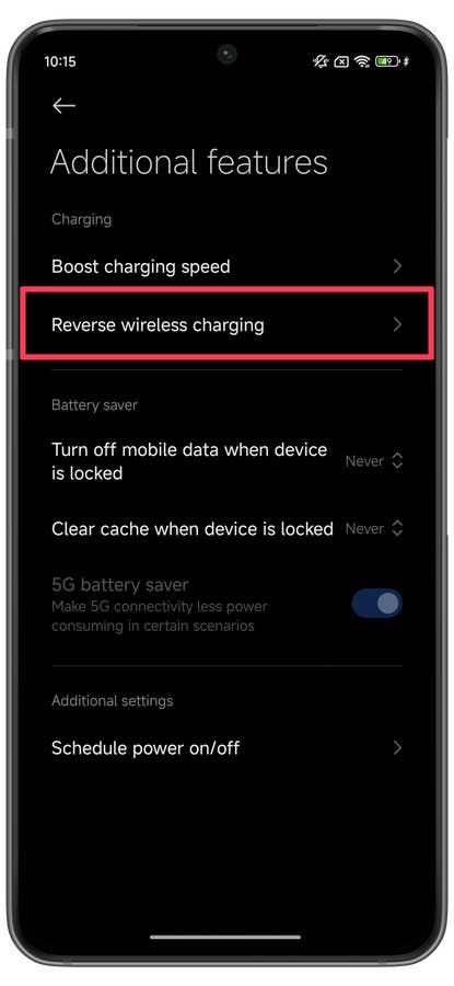 - Tippt auf Umgekehrtes drahtloses Laden.
