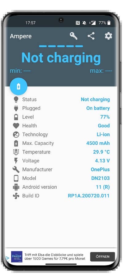 Sie zeigt auch an, wie gesund Euer Akku ist, liefert aber keine genaueren Daten, sondern man kann nur erkennen, ob der Stand gut oder schlecht ist. Ampere ist vor allem dazu gedacht, herauszufinden, ob Ihr das richtige Ladegerät für Euer Smartphone benutzt oder nicht.