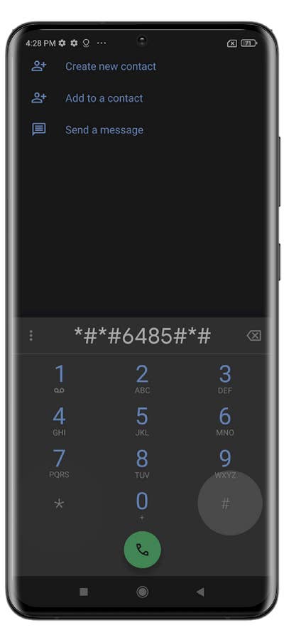 - Gebt auf der Tastatur Eurer Telefon-App (nativ) den Code *#*#6485#*#* ein.
