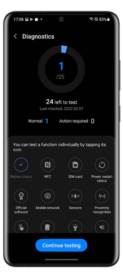 Bei Samsung könnt Ihr eine ganze Reihe von Diagnosefunktionen starten, um zu überprüfen, ob Euer Smartphone auf Hardware-Ebene einwandfrei funktioniert. Insgesamt könnt Ihr 25 Funktionen und Komponenten testen. Von den Sensoren über die Netzwerkkonnektivität bis hin zum Akku. Ihr könnt auf diese Diagnosefunktion auf zwei Arten zugreifen, je nachdem, ob Ihr One UI 6 installiert habt oder nicht.