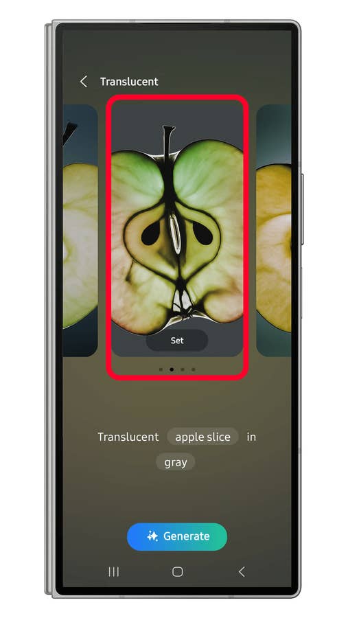 - Wählt aus den generierten Hintergrundbildern das passende aus und tippt dann auf Festlegen.