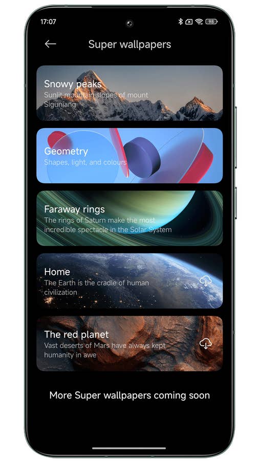 Auch hier handelt es sich um etwas sehr Bekanntes und Beliebtes. Super Wallpapers sind animierte Hintergrundbilder (Live Wallpapers). Sie zeigen Szenen aus der Natur mit Landschaften oder sogar Planeten. Und wenn Ihr Euer Xiaomi-Smartphone entsperrt und den Startbildschirm aufruft, wird kontinuierlich ein großer Zoom-In- oder Zoom-Out-Effekt angewendet.
