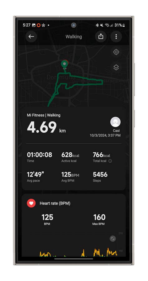 Egal, ob Herzfrequenz und Blutsauerstoffsättigung, Eure zurückgelegten Schritte, verputzte Kalorien oder Euer Schlaf: Xiaomi wirbt damit, dass das neue Fitnessarmband präziser misst. Leider kann ich das mangels Vergleichbarkeit nicht alles gut nachvollziehen. Ich verfüge nicht über medizinisches Gerät oder einen hochwertigen Tracker inklusive Brustgurt. Daher bin ich einfach losmarschiert und habe die Distanz, Schritte etc. dabei mit ein paar Konkurrenz-Apps getrackt.