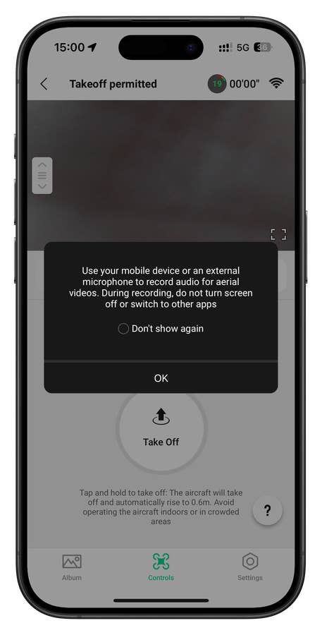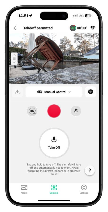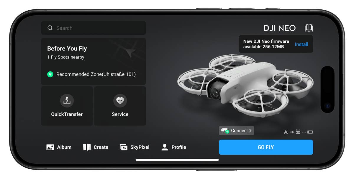 Wenn Ihr mehr Kontrolle wollt, könnt Ihr die DJI Neo auch mit der Smartphone-App verbinden. Dazu öffnet die Drohne ein WLAN, und Euer Handy verbindet sich. Im Test klappt das nach dem initialen Setup meistens, ein paar Mal mussten wir allerdings erneut den Connection Wizard durchlaufen. Das dauert nur wenige Sekunden, ist aber dennoch etwas lästig. Hoffentlich sorgt hier ein Firmware-Update bald für Abhilfe.