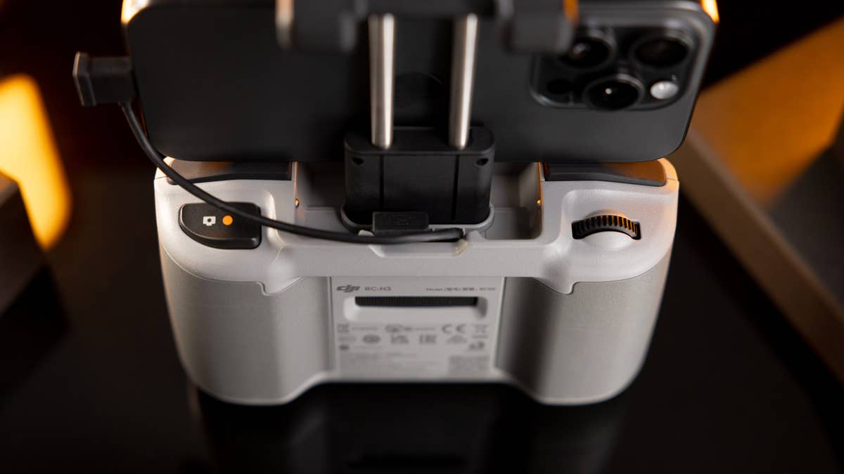 Wie eingangs erwähnt, unterstützt die DJI Neo diverse Fernsteuerungen des Herstellers. In der „Fly More Combo“ ist die RC-N3 enthalten. Oben in die Fernsteuerung könnt Ihr ein Handy einklemmen, anschließend müsst Ihr noch mit einem USB-C- oder Lightning-Adapter die Verbindung zum Smartphone herstellen.