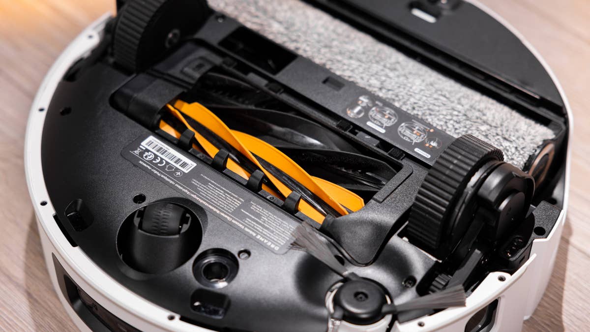 Was die Saugleistung angeht, befindet sich der Saugroboter mittlerweile auf dem Niveau von Akku-Staubsaugern. Erstaunliche 30.000 Pa integriert Dreame in das neue Top-Modell. Damit hat er 50 Prozent mehr Leistung als sein Vorgänger. Der Aqua10 Ultra Roller Complete eignet sich bestens für Haushalte mit Tieren. Ein Grund ist die neu entwickelte „HyperStream“-Bürste, die in der Lage ist, 30 cm lange Haare zu entfernen. Nach unseren Testläufen können wir das Versprechen bestätigen. Sowohl in der Haupt- als auch der Seitenbürste hat sich während des Tests kein Haar verheddert.