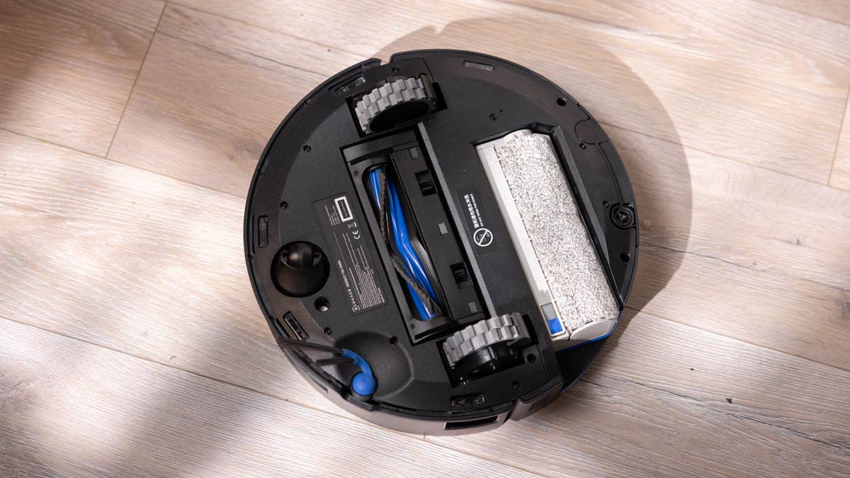 Der Deebot T80 ist 9,8 cm hoch, obwohl der Hersteller auf einen LiDAR-Navigationsturm erneut verzichtet. Im Roboter gibt es einen 220-ml-Staubbehälter und einen 110-ml-Wassertank. Ecovacs kommt auch ohne eine ausfahrbare Seitenbürste aus, vertraut bei der Wischfunktion wieder der Wischwalze, die beim X8 Pro Omni debütierte und meiner Meinung nach die beste Wischfunktion auf dem Markt aktuell ist. Besonders ist hierbei, dass diese sogar nach außen fährt, um Ecken zu reinigen.