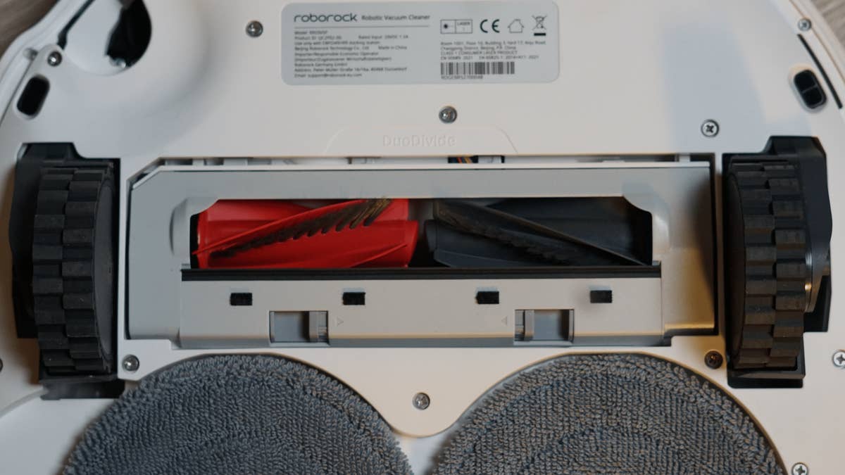 Außerdem gibt es einen weiteren Clou. Wie schon erwähnt fährt der Roboter seinen Lidarturm herunter. Allerdings bedeutet das nicht, dass der Turm währenddessen nicht eingesetzt wird. Roborock hat einen freien Spalt gelassen, damit der Lidarturm zu jeder Zeit bei der Navigation hilft – egal, ob ausgefahren oder nicht.