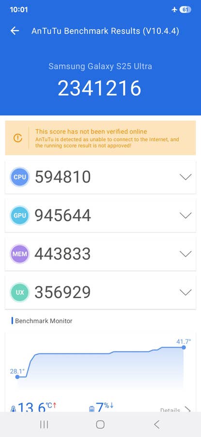 Auch Antutu ergab für das S25 Ultra niedrigere Werte als für das OnePlus 13, obwohl Samsung und Qualcomm eine höhere Frequenz für die S25-Handys ankündigten. Wir haben die Tests wiederholt und keine offensichtlichen Probleme gefunden. Die S25-Telefone bieten keine höheren Leistungseinstellungen als den Standardmodus, der im Test verwendet wurde.
