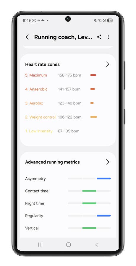 Der Trainingsplan enthält eine gute Auswahl an Einheiten, von leichtem Joggen über Tempoläufe bis hin zu Bergauf-Intervallen. Mir gefiel, dass ich einen Überblick darüber bekam, ob ich mich zu sehr oder zu wenig anstrengte, was mir half, Anpassungen vorzunehmen. Nachdem ich die anfängliche Lernkurve überwunden hatte, fand ich den Running Coach dennoch nützlich. Ich konnte sehen, wo ich meine Form verbessern musste und wie mir die Trainingshäufigkeit helfen konnte, wieder in einen soliden Trainingsrhythmus zu kommen.