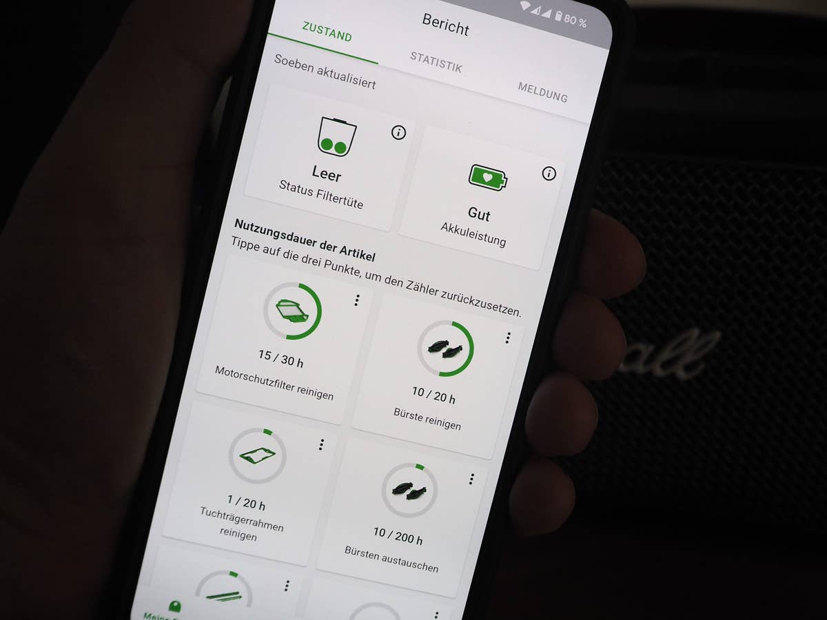 Hier bekommt Ihr wertvolle Informationen, die Staubsauger-Besitzern sonst eher verborgen bleiben. In der App könnt Ihr den Füllstand des Beutels einsehen, Fehlermeldungen beim Akku nachvollziehen oder auch die Laufzeit der wechselbaren Teile (Bürste, Motorschutzfilter, Wischtuch-Platte) checken. So seid Ihr Herr der Lage, wenn die Leistung nachlässt und könnt Teile ersetzen oder reinigen und den VK7 wieder flott machen. Durch diese Unterstützung ist der teure Kobold alles andere als ein Wegwerfprodukt.